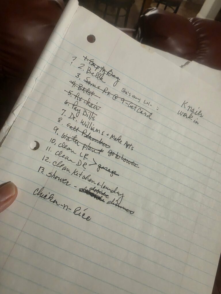 Our Mom was constantly making plans. Even in retirement, she had stuff to do. She started every day with a list: these are the things I’ve got to get done. She organized her thoughts that way, which she admitted were chaotic. She organized our lives that way. We were even worse than chaotic… Some of us were resistant. Not naming any names.